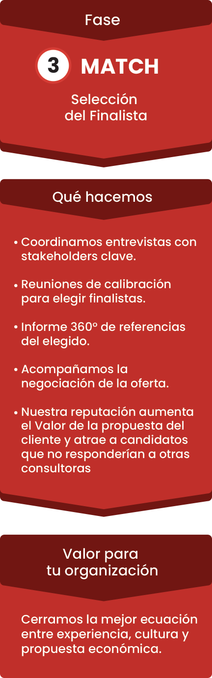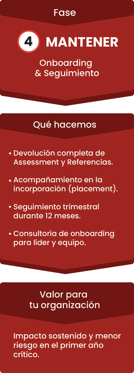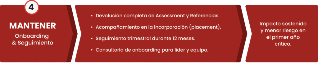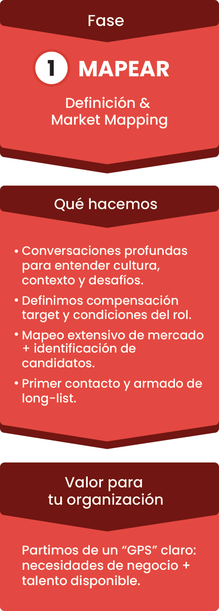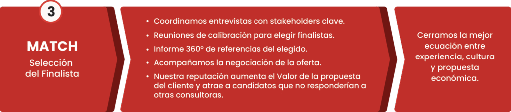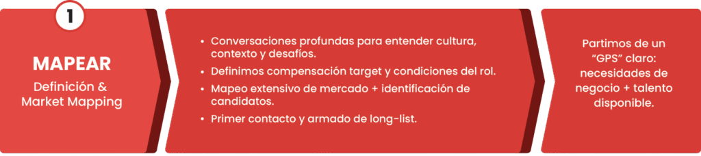 Nuestra receta propietaria para búsquedas ejecutivas combina rigor analítico y acompañamiento end-to-end.